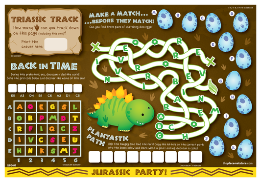 Dinosaur-Themed Kids’ Activity Placemat – Customizable for Restaurants, Diners & Family Venues