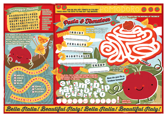 Tomato-Tastic Italian Kids’ Activity Placemat – Customizable for Family-Friendly Restaurants & Pizzerias