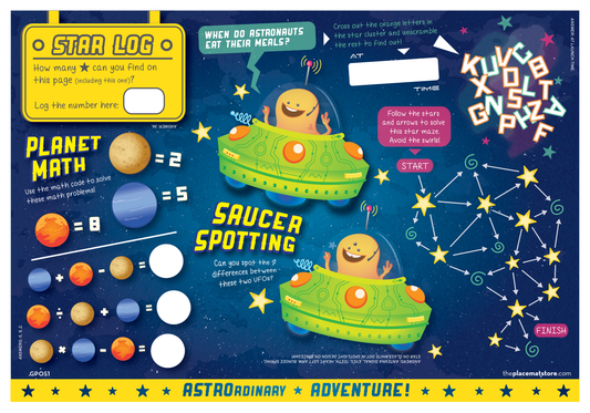 Outer Space-Themed Kids’ Activity Placemat – Customizable for Restaurants, Diners & Family-Friendly Venues