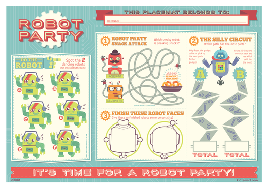 Robot-Themed Kids’ Activity Placemat – Customizable Entertainment for Restaurants & Family-Friendly Venues