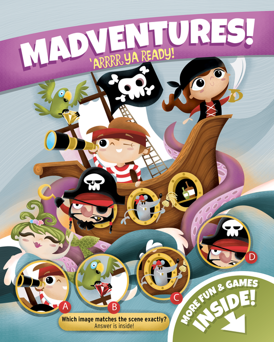 Madventures "Arrrr Ya Ready?" Pirate-Themed Kids Activity Book – 4 Pages of Creative Fun for Restaurants, Travel & More