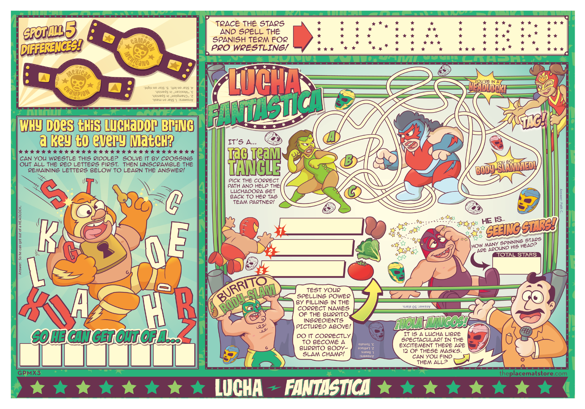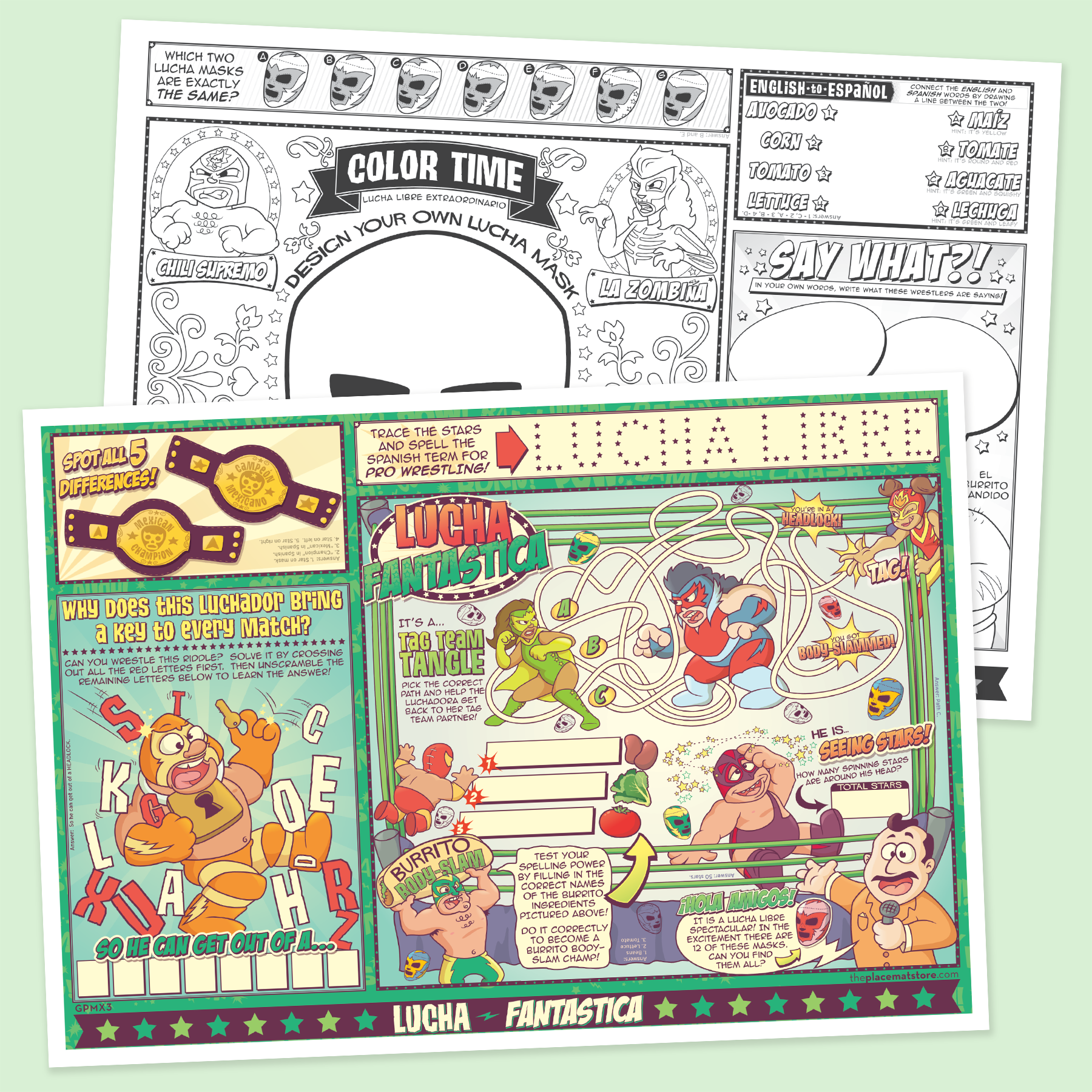 Lucha Libre-Themed Kids’ Activity Placemat – Customizable for Mexican Restaurants & Family Dining Venues