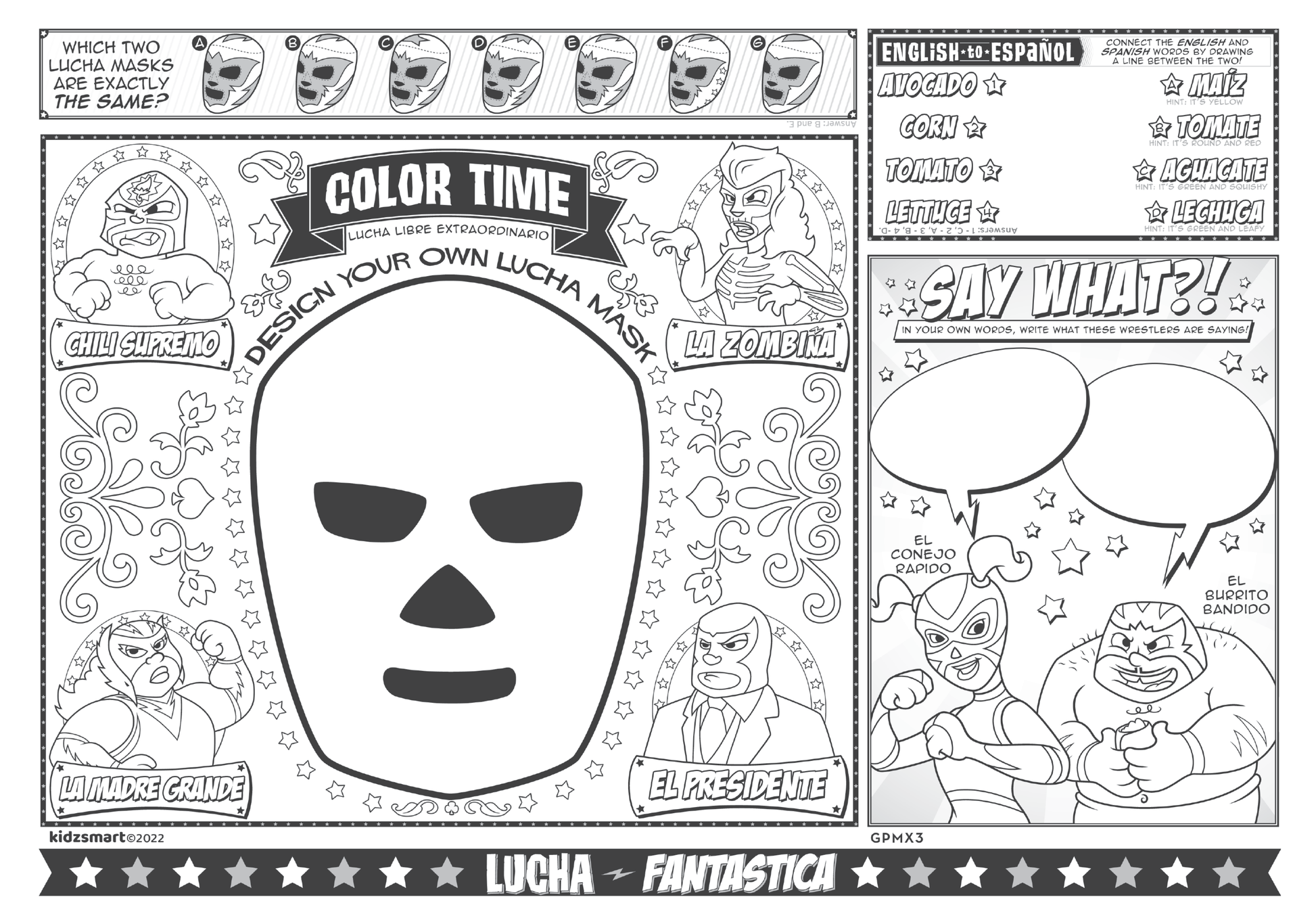 Features:• Luchadores Theme – Colorful pro-wrestling characters with games, jokes, and fun facts